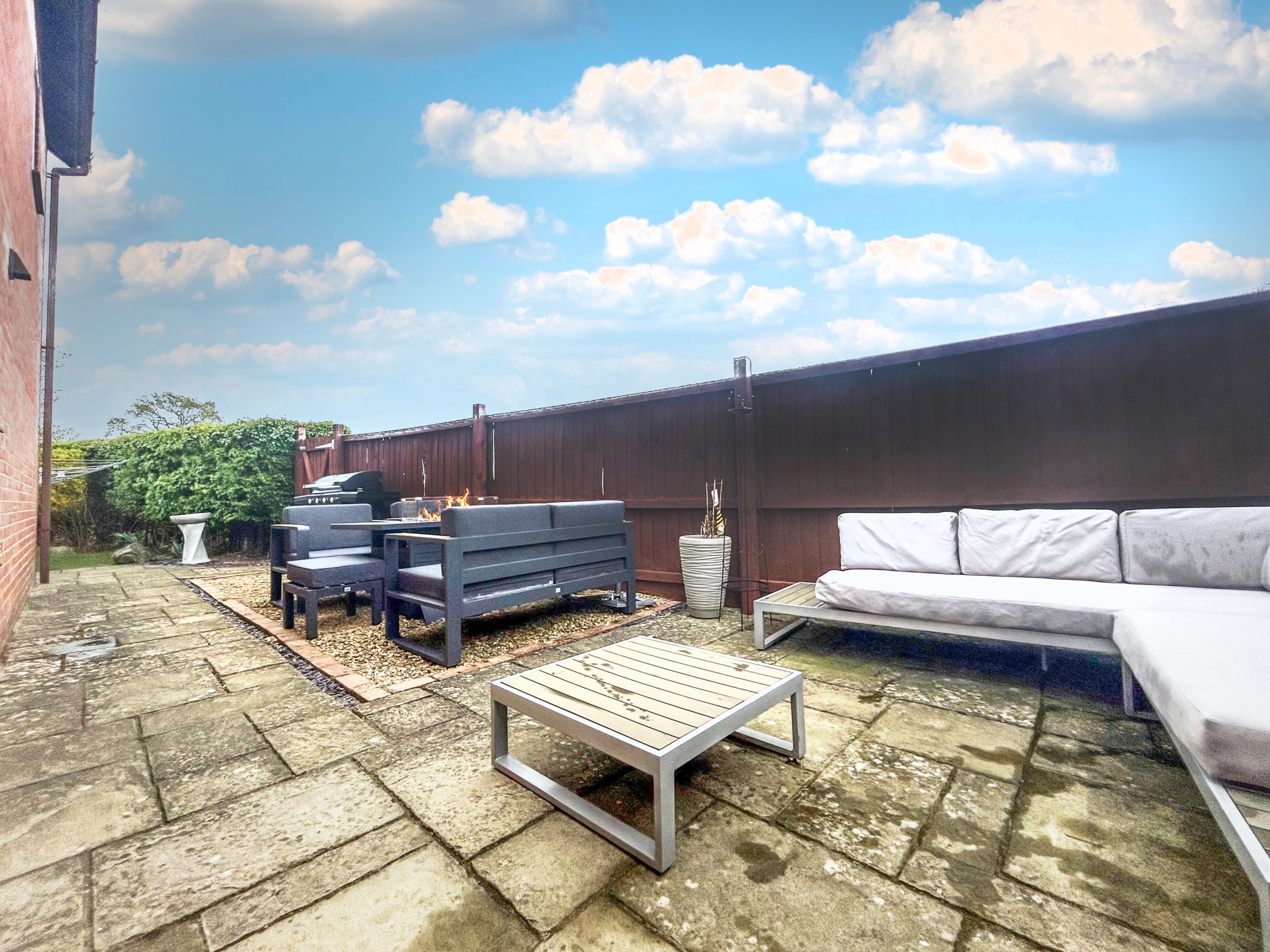 Outside, the property features a double garage equipped with power, lighting, and up-and-over doors, along with driveway parking for multiple vehicles. The garden benefits from sunlight in different areas throughout the day and offers exceptional privacy, further enhancing the peaceful village setting. The gated access to the field at the rear is a popular feature, especially for children.