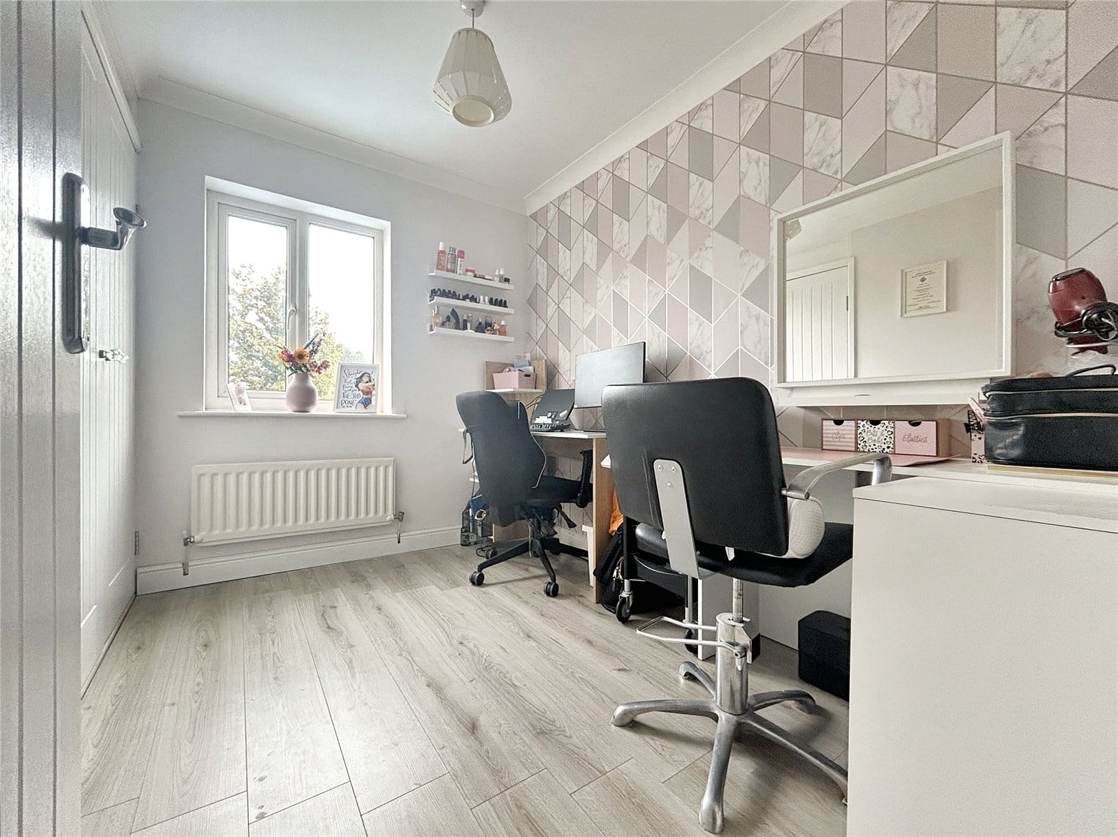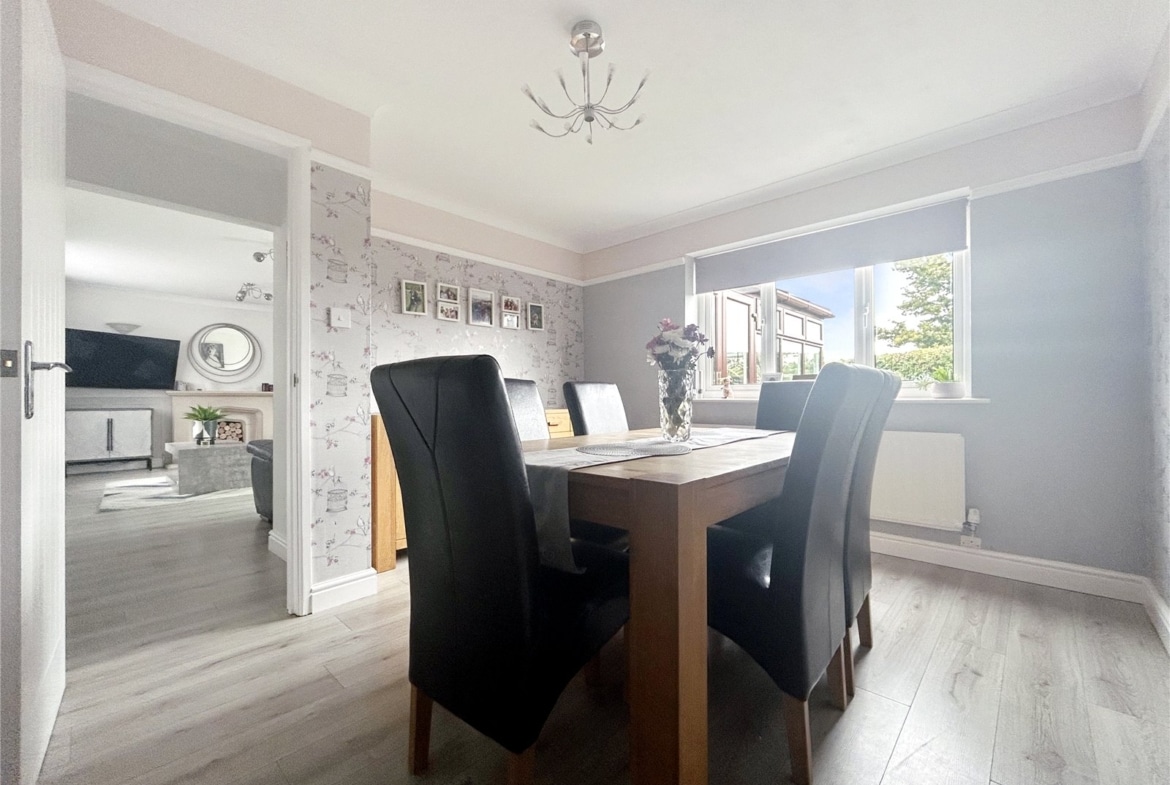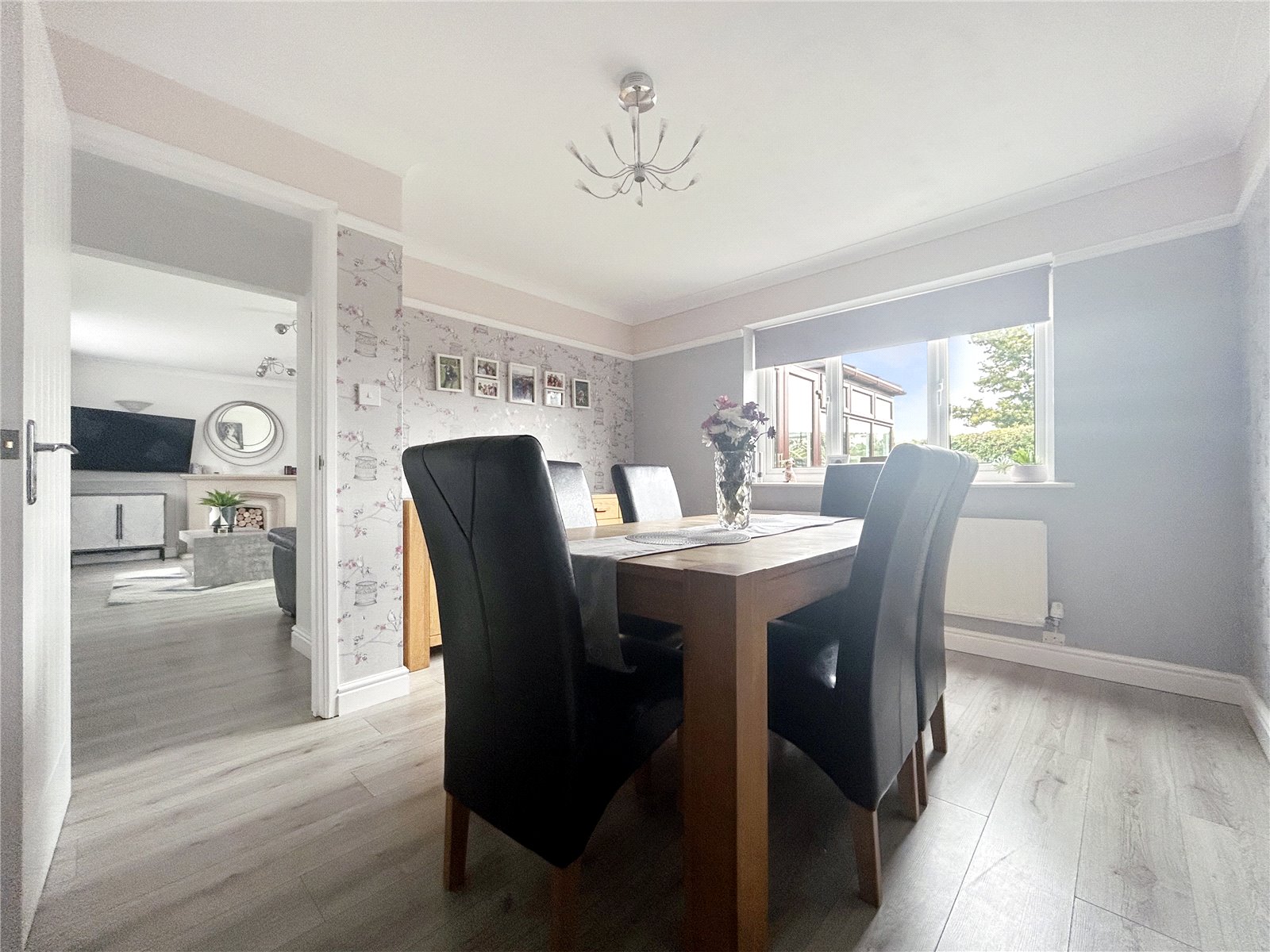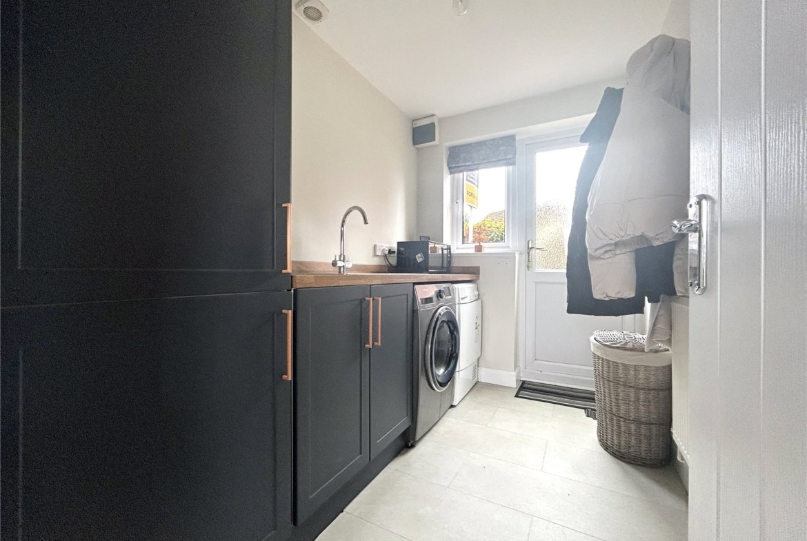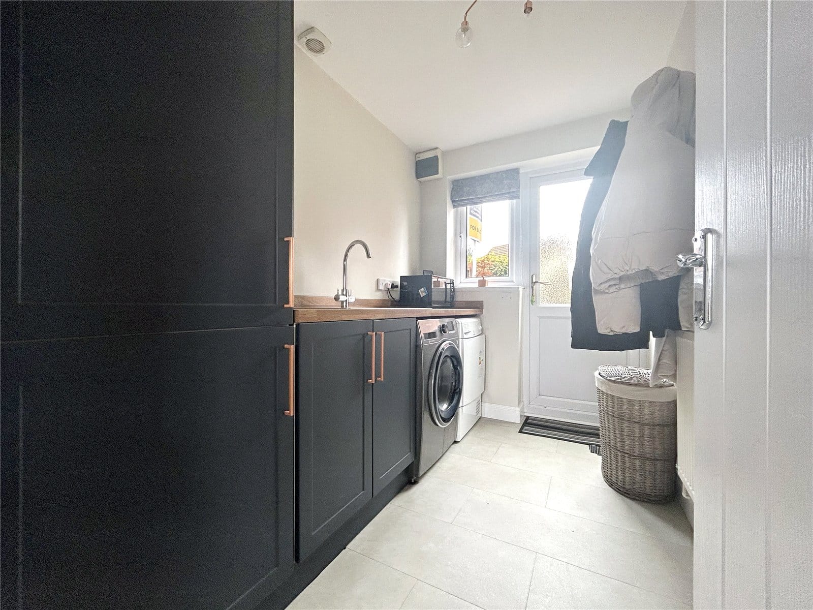 Adjacent to the kitchen is the dining room, which comfortably accommodates a large dining table, perfect for hosting family dinners or gatherings with friends. The dining area also enjoys views over the rear garden.Practicality is further enhanced with the utility room located just off the kitchen, providing space for laundry appliances, and a downstairs cloakroom/WC is conveniently located near the main entrance.Upstairs, the first floor offers four well-proportioned bedrooms. The spacious master bedroom is particularly generous, featuring built-in wardrobes and space for additional furniture. The three remaining bedrooms are perfect for children, guests, or as office spaces, most of which enjoy their own built in storage/wardrobes.