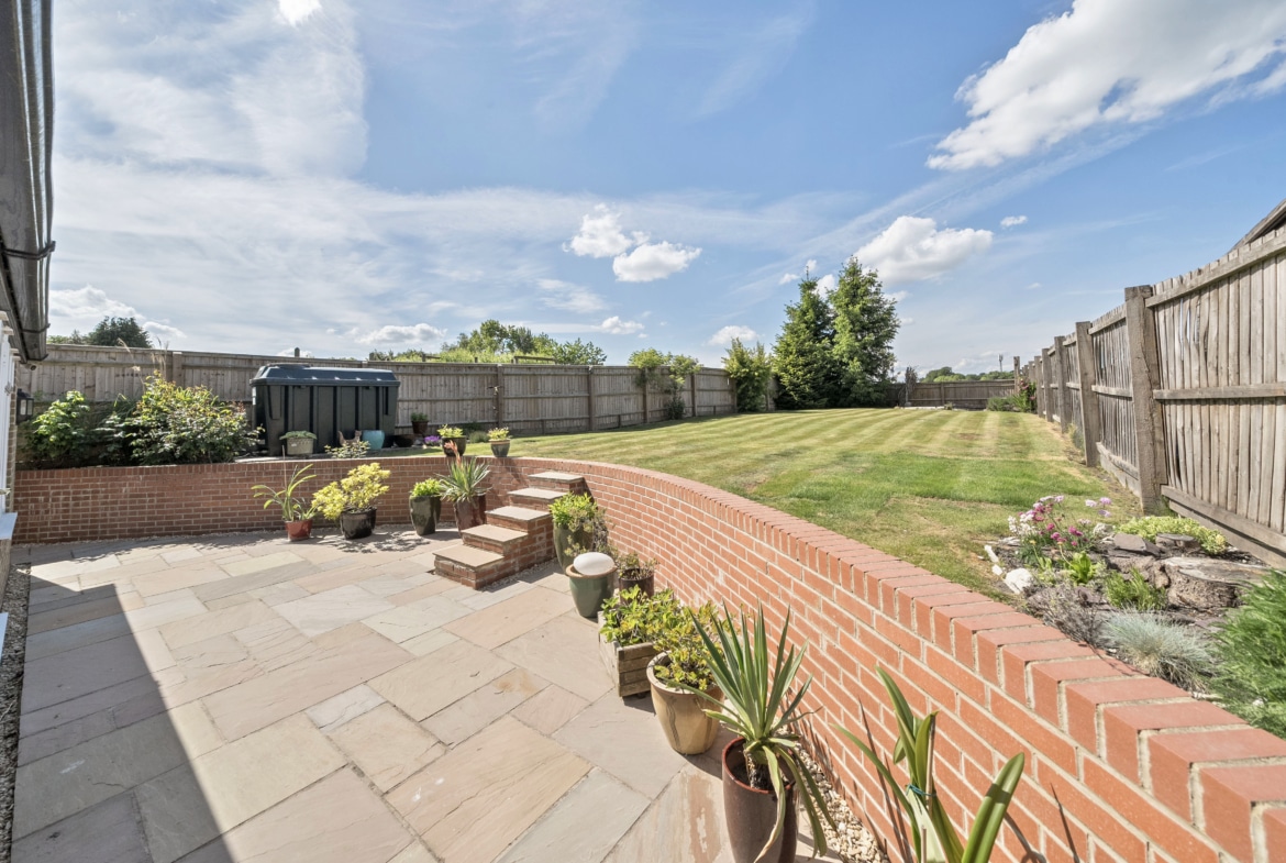 To the outside, there is well tended gardens, laid to lawn with flower and shrub borders, ample driveway parking, which also gives access to the Garage. The private Rear Garden, extends to some 90ft in length and has been landscaped with large patio area with retaining wall, with steps up to the lawn, which extends all the way to the rear, enclosed by timber fencing and offers a pleasant open aspect to the rear.
