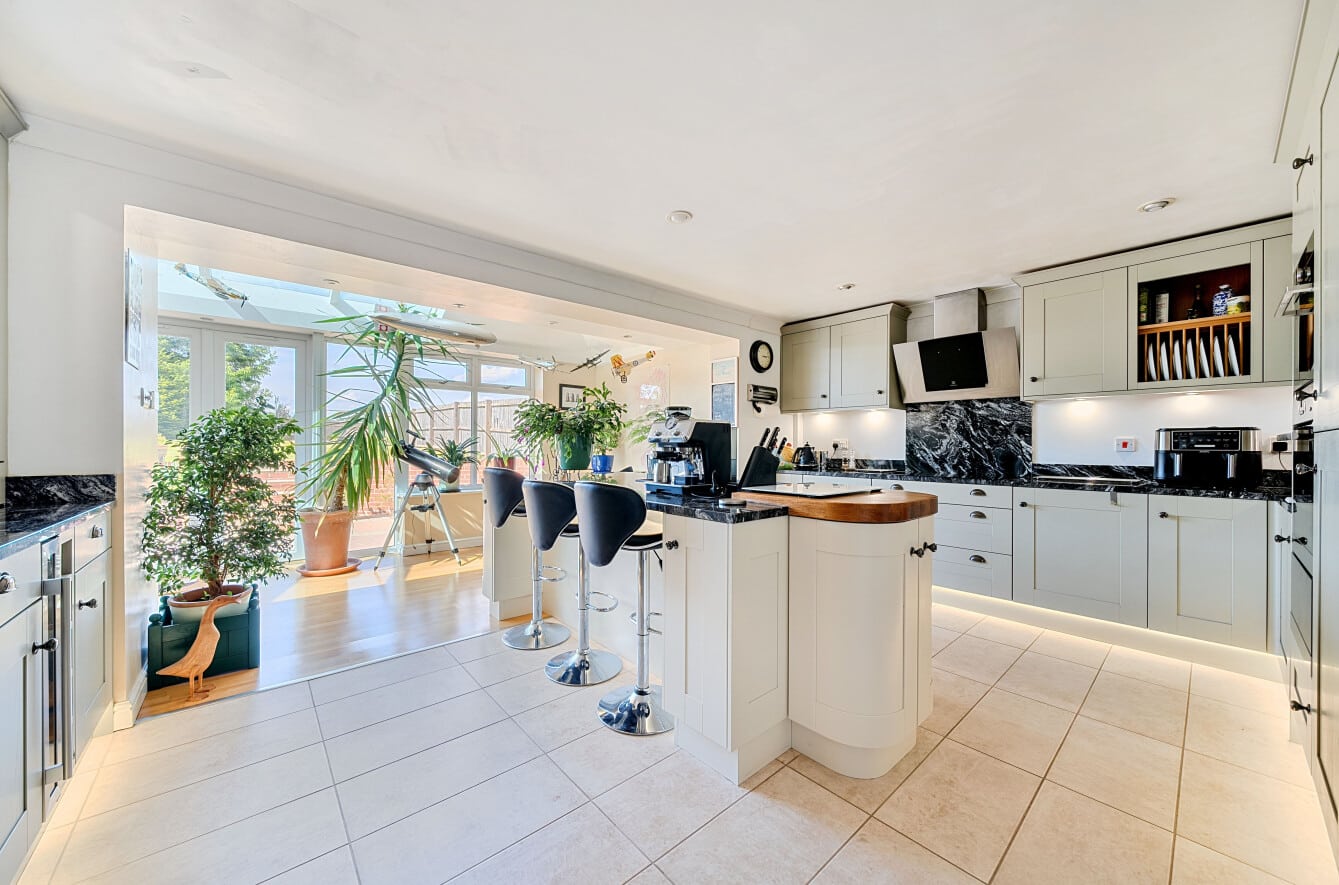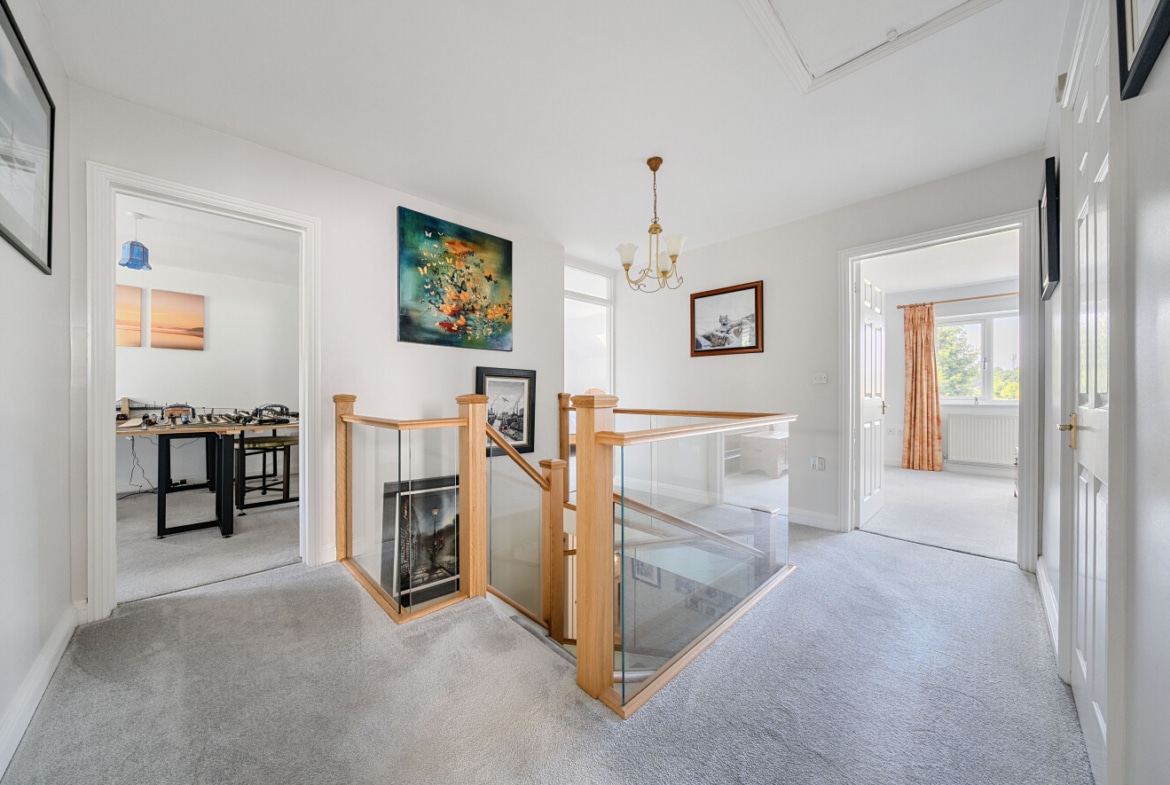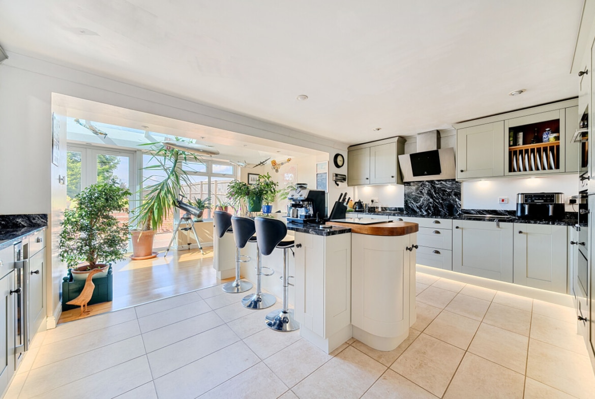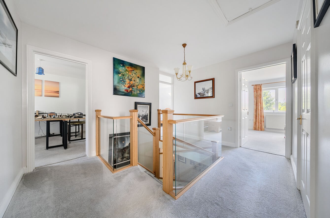 The well appointed and extended accommodation offers around 2000sqft (185.8sqm) of living space, perfect for the modern family and comprises: Generous Hallway with feature oak and glass staircase, rising to the impressive Galleried Landing, 17′ Sitting Room with aspect to the front, Cloakroom, separate Utility Room and then doors into the fantastic 30′ Kitchen/Dining/Family Room, which includes a modern refitted Kitchen/Breakfast area finished to a high specification, with granite worktops and integrated appliances, glazed vaulted roof to the Family Room, with windows and doors opening into the Rear Garden. To the first floor, Galleried Landing giving access to the Four double Bedrooms, all with built-in wardrobes, Ensuite Shower Room to Bedroom One and a further Family Bathroom.