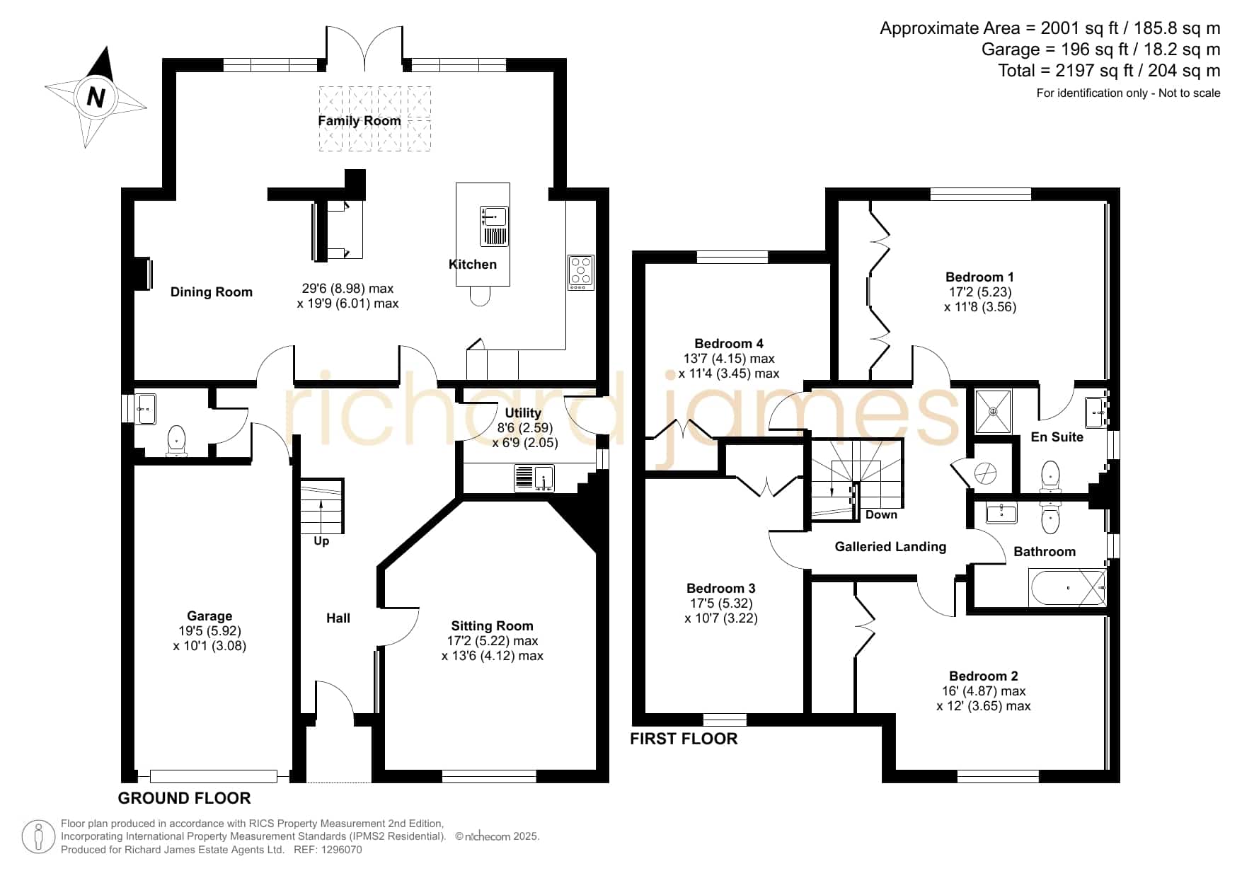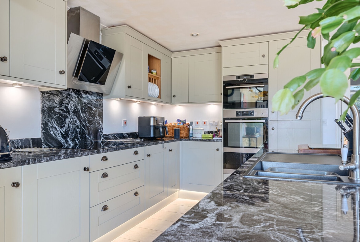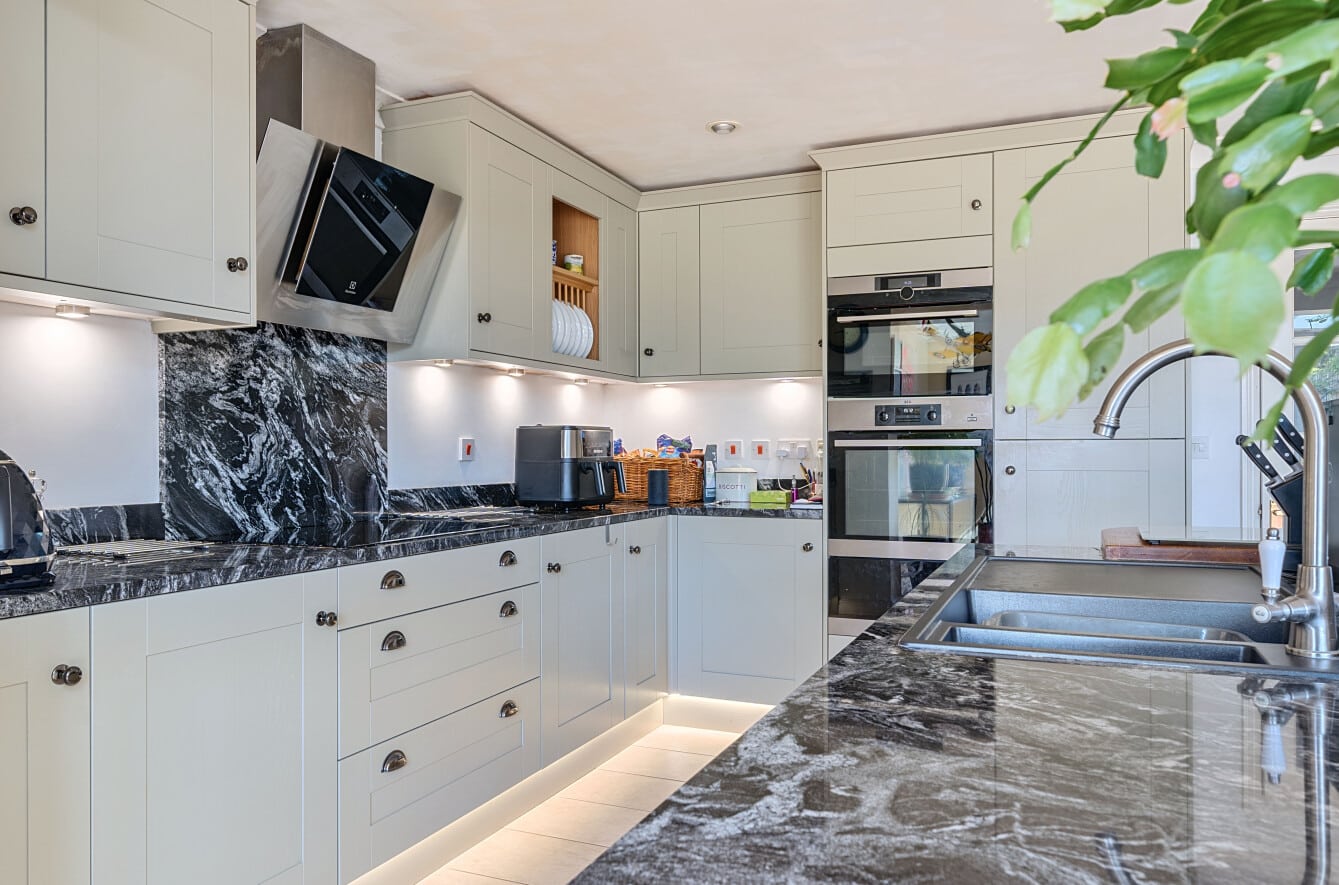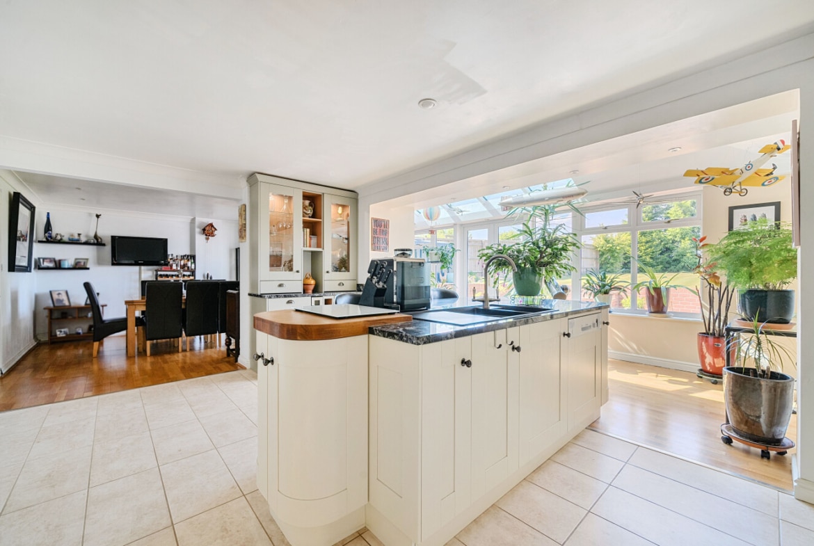 The well appointed and extended accommodation offers around 2000sqft (185.8sqm) of living space, perfect for the modern family and comprises: Generous Hallway with feature oak and glass staircase, rising to the impressive Galleried Landing, 17′ Sitting Room with aspect to the front, Cloakroom, separate Utility Room and then doors into the fantastic 30′ Kitchen/Dining/Family Room, which includes a modern refitted Kitchen/Breakfast area finished to a high specification, with granite worktops and integrated appliances, glazed vaulted roof to the Family Room, with windows and doors opening into the Rear Garden. To the first floor, Galleried Landing giving access to the Four double Bedrooms, all with built-in wardrobes, Ensuite Shower Room to Bedroom One and a further Family Bathroom.